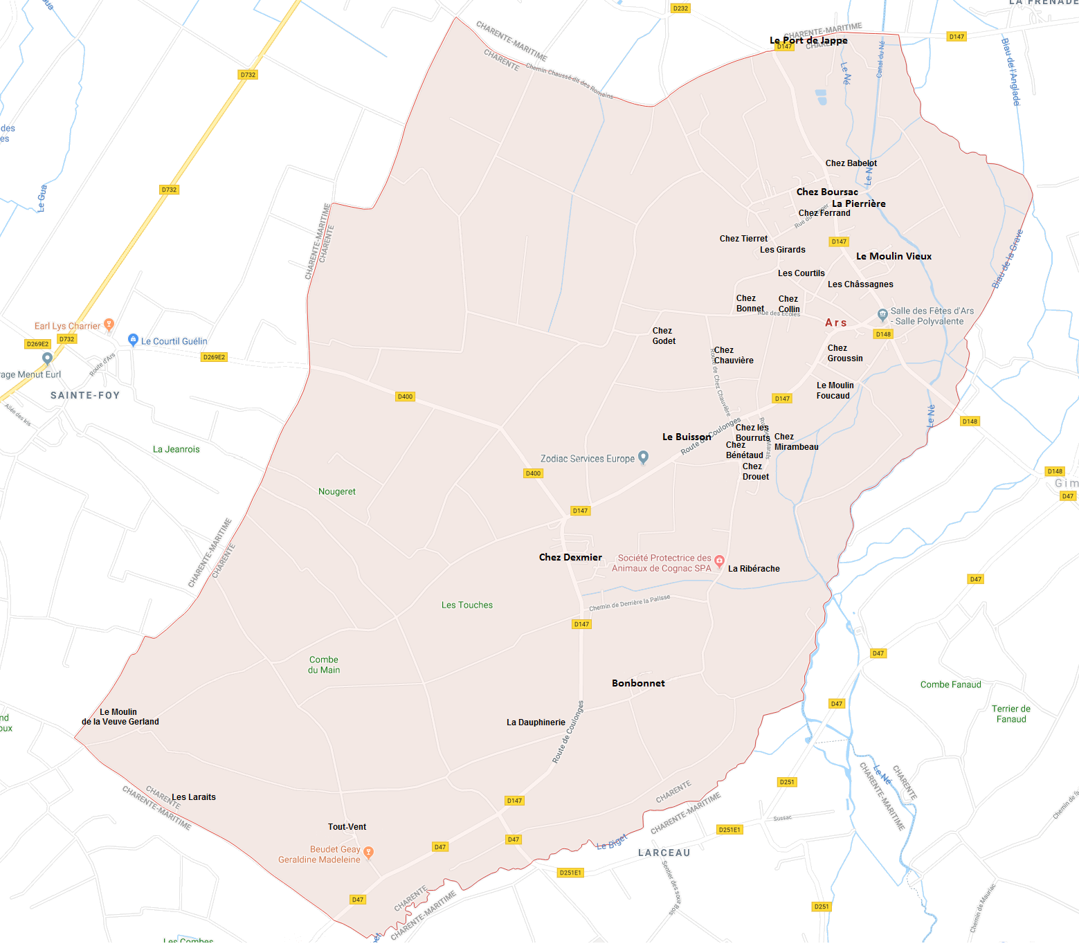 Ars est à 42 km d’Angoulême, la préfecture, et 14 km d’Archiac et de Pons.