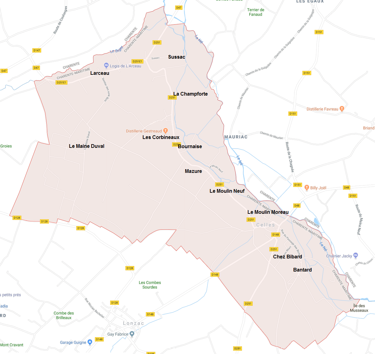 | Bantard Bournaise Chez Bibard La Champforte Larceau Le Maine Duval | Le Moulin Moreau Le Moulin Neuf Les Corbineaux Mazure Sussac |