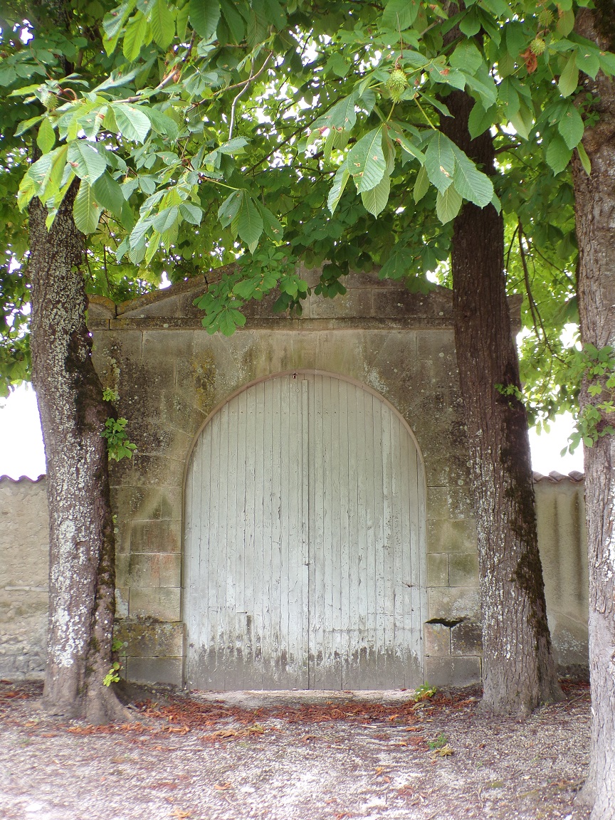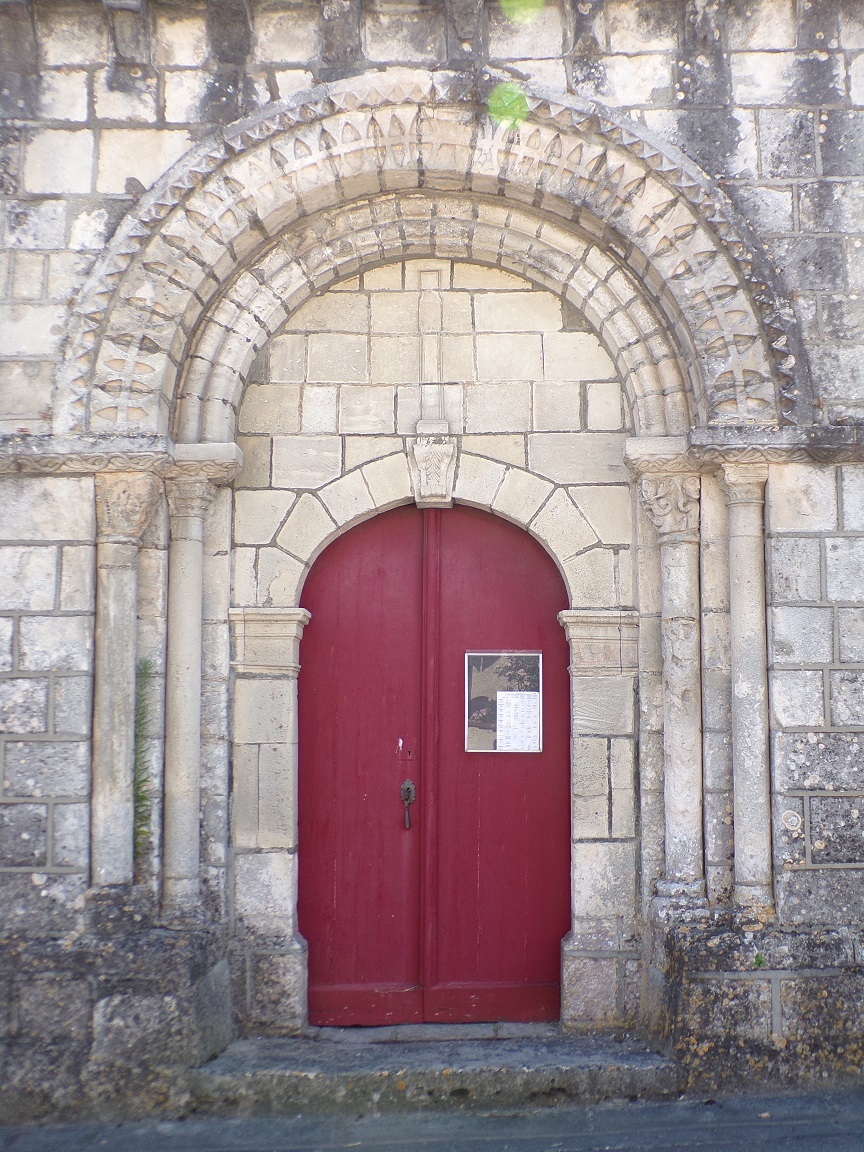 Celle-ci se compose d’un portail central à deux archivoltes en plein cintre sur quatre colonnes dont deux ont conservé leur chapiteau. L’une des voussures est faite de deux tores, une autre est pour le moins originale en Saintonge puisqu’elle est faites de deux rangées de dents de scie opposées et séparées par un bandeau.