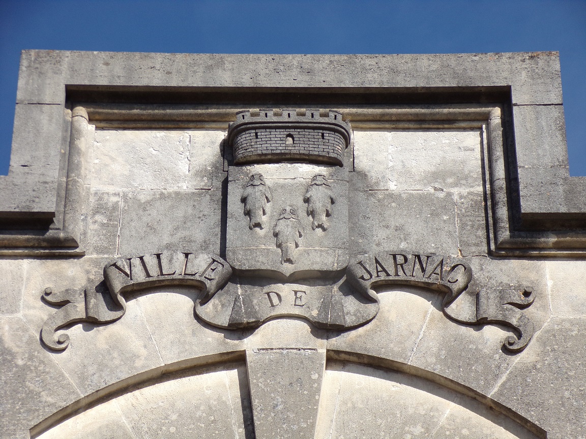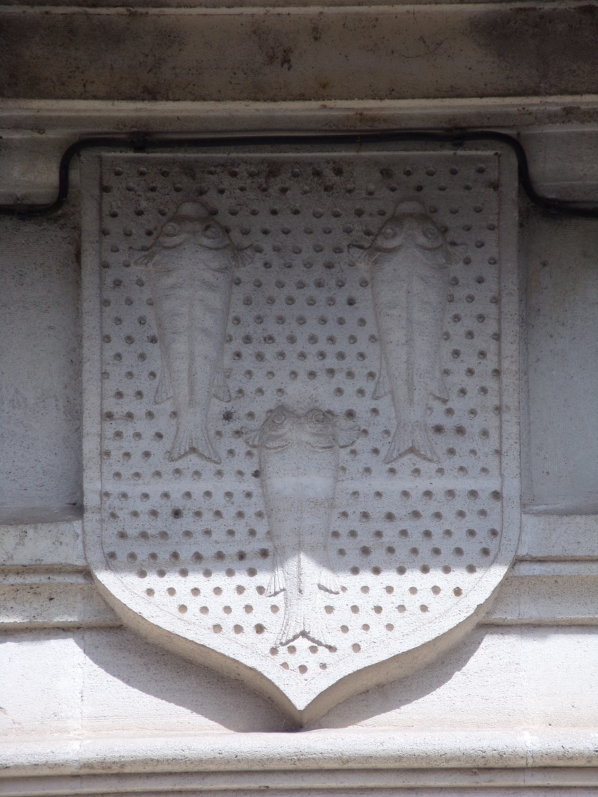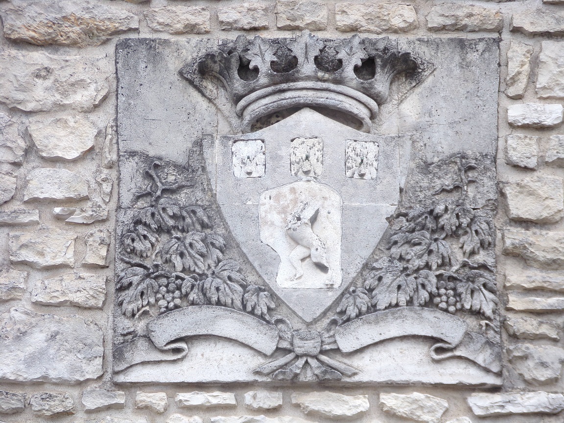 - 17 rue Jacques Moreau – Sur la maison se trouve une petite sculpture polychrome représentant l’emblème d’une ancienne maison de cognac.