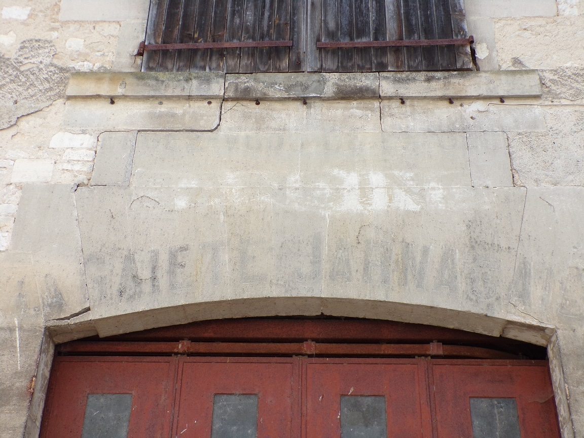 - rue Basse – au-dessus du porche jouxtant le n°13, l’enseigne peinte «Au rendez-vous de la Jeunesse — A La Gaieté Jarnacaise»