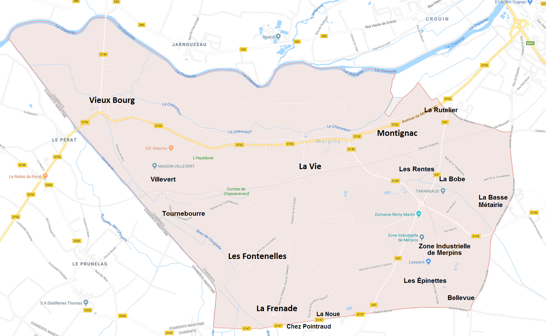 Merpins est aussi à 18 km de Pons, 23 km de Saintes et 40 km d’Angoulême.