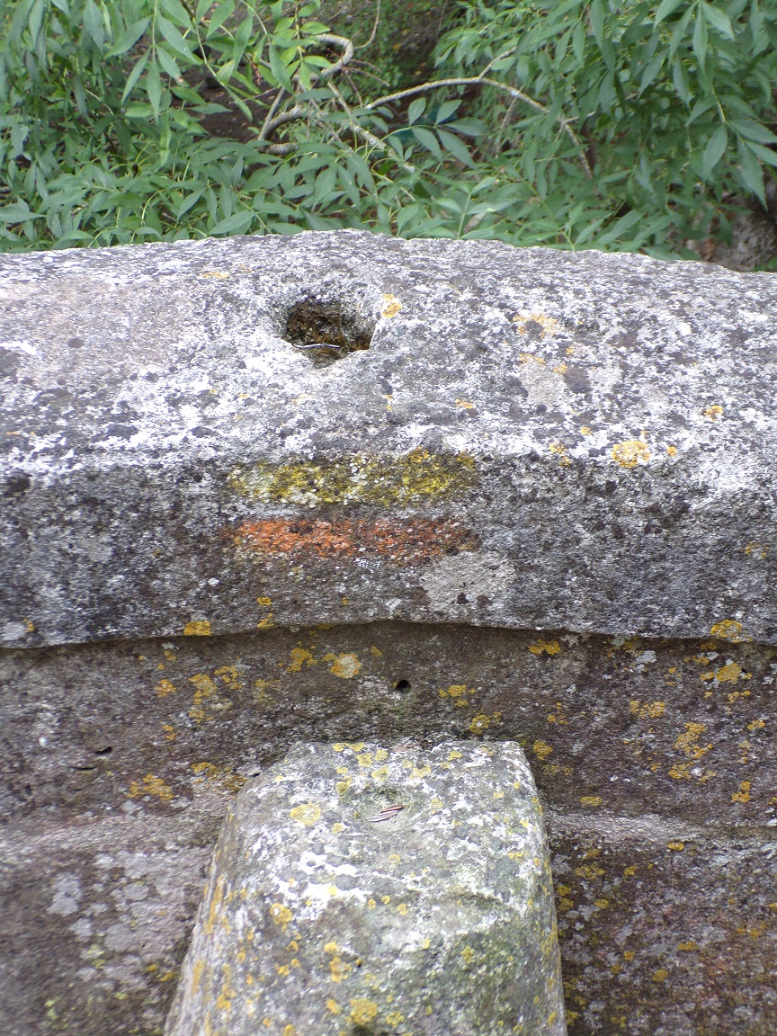 A l’intérieur quatre « chasse-roues » ou « bouteroues » évitent aux roues des charrettes et chariots d’abîmer le parapet.