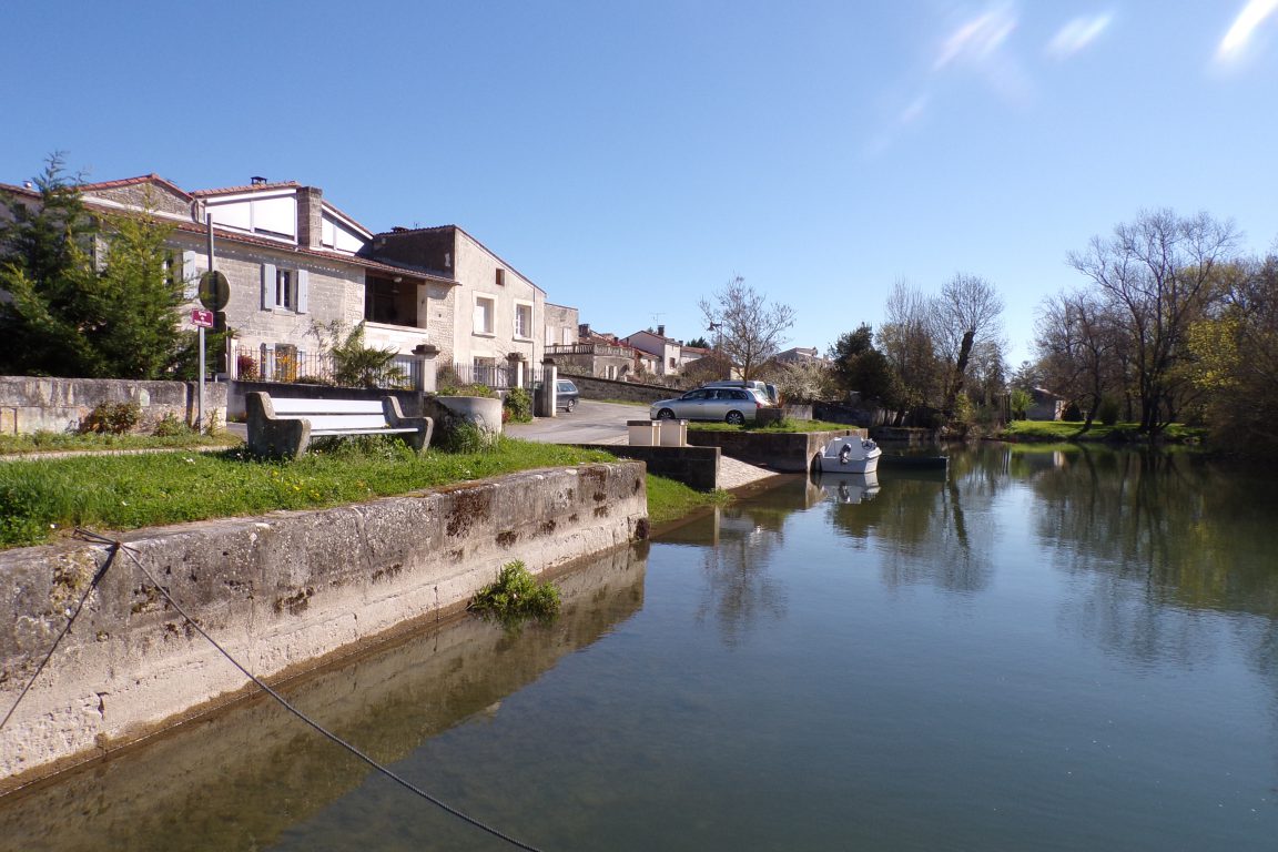 En aval, la guirlande, petit cours d’eau intermittent, limite géographique entre les anciennes provinces de Saintonge et d’Angoumois, se jette dans la Charente avant le Pas du Loup, utilisé depuis des temps immémoriaux pour le passage d’une rive à l’autre.