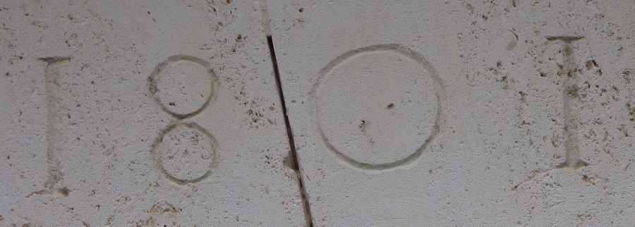 Inscription ‘Chauvin 1602‘ située sur le mur de clôture de la maison.