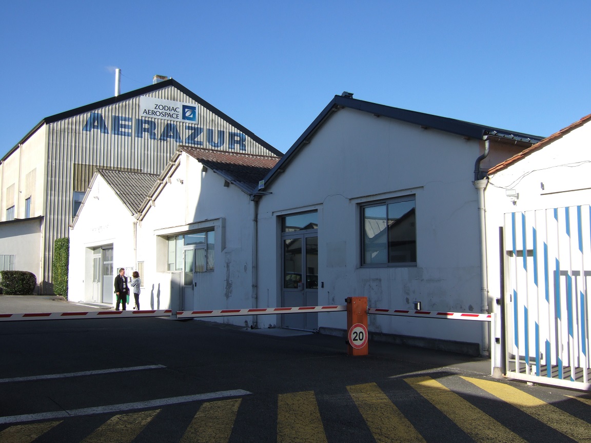 Histoire : Scierie mécanique de la 2ème moitié du XIXe siècle, incendiée en 1903 et reconstruite en 1905 pour P. L. Marchand. Les bâtiments sont occupés depuis 1938 par Aérazur, qui fait construire la même année l’atelier de fabrication et l’atelier de réparation et de stockage. Construction du nouvel atelier de fabrication en 1967 et du bureau en 1978. Fabrication de barrières d’arrêt pour avion, de flottaisons d’hélicoptères, de ballons dirigeables, de toboggans de sauvetage et de vêtements spéciaux. Production à 80% pour l’armée. Est depuis 1978 une filiale du groupe Zodiac. Effectif en 1987 : 270 personnes.