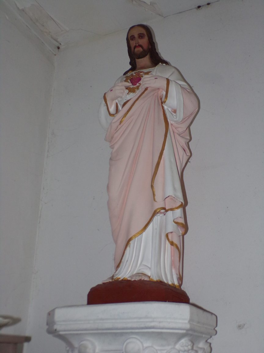 Une vierge à l’enfant sculptée a été dégagée lors de précédents travaux. Ce relief de style naïf est scellé dans le mur de la nef.