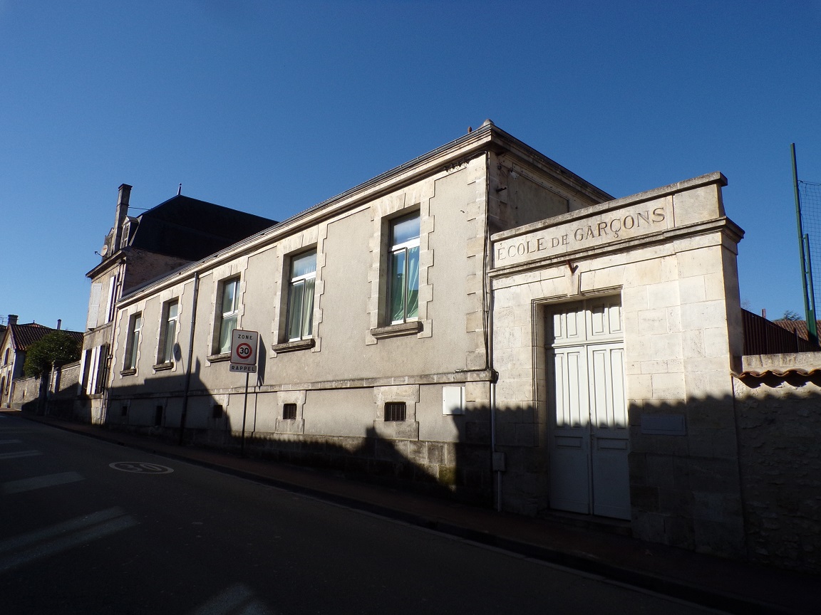 L’aumônerie et sa petite église existaient dès le XIIe siècle pour certains auteurs et au XIVe siècle selon d’autres. C’était un lieu de refuge sur la route de Saint-Jacques-de-Compostelle. Au XVIIIe siècle, elle devint un hôpital-hospice et le restera jusqu’à son transfert à Saint-Martin en 1810. En 1816, les bâtiments sont vendus au département de la Charente pour en faire une gendarmerie. En 1882, la ville les achète pour en faire une école de garçons et entreprend des travaux d’appropriation de 1882 à 1885. Nouveaux travaux en 1924 sous la direction de l’architecte Raymond Clavery.