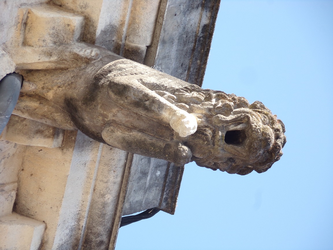 Son riche décor semble inspiré de l’architecture italienne : colonnes à bossages du portail qui prennent appui sur des têtes de lions, répétées à nouveau à leur couronnement, tête d’angelot au centre de la frise, vases d’où s’échappe d’abondance de fruits, et gargouilles zoomorphes au niveau de la corniche.