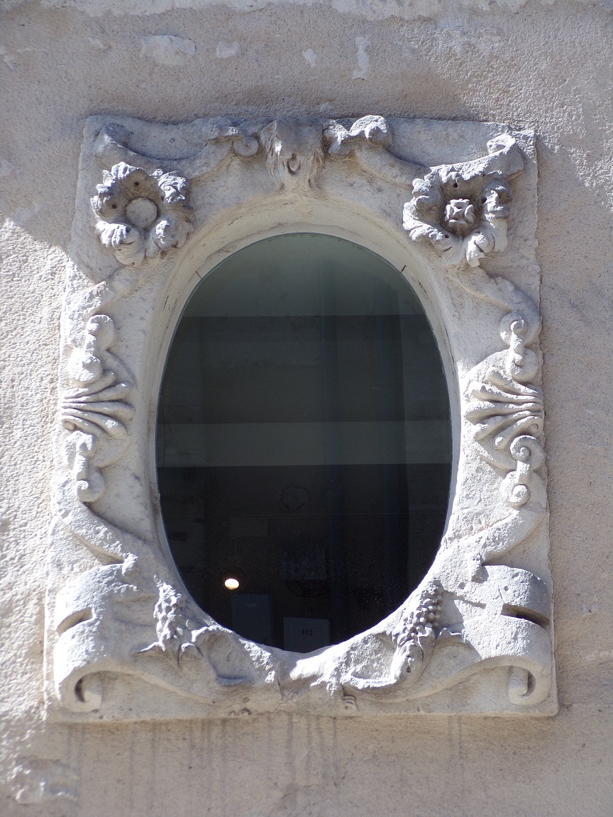 Les baies percées régulièrement sur la façade ont leur partie supérieure ornée d’une frise et leur allège portée par des consoles ornées en surface de feuillages. L’oculus également présente un encadrement très finement décoré.